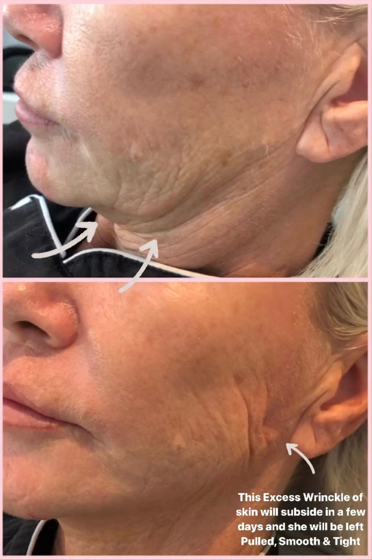 For two weeks you will be slightly swollen but there will be a very good pull on your skin and then the magic starts to happen – the collagen starts to release and your skin will start to look incredible. You will have an overall glow to your skin as well as that pull from the threads! They last for 18+ months depending on your lifestyle.